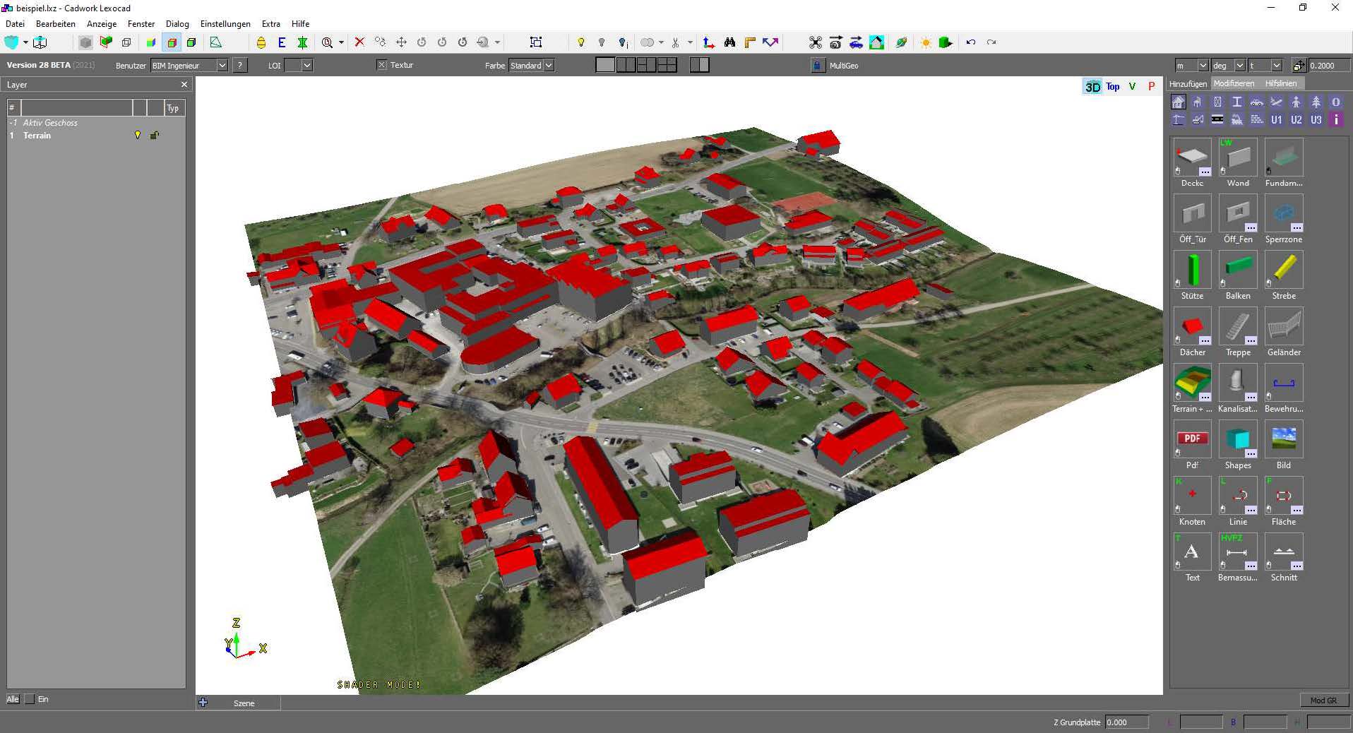 D'autres modifications des données 3D dans lexocad ainsi que l'utilisation dans 2D module de base et 2DR route sont possibles.